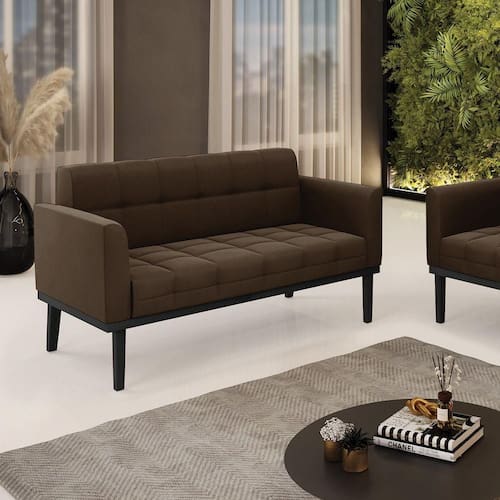 Poltrona Namoradeira Decorativa Pés Fixo Em Madeira Preto Suede Marrom 19