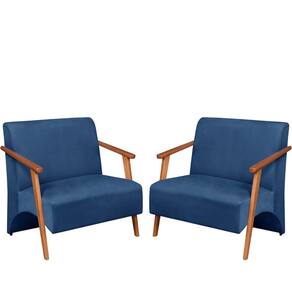 Poltrona Namoradeira Venus Braço Madeira Maciça Suede Unidecor - Azul