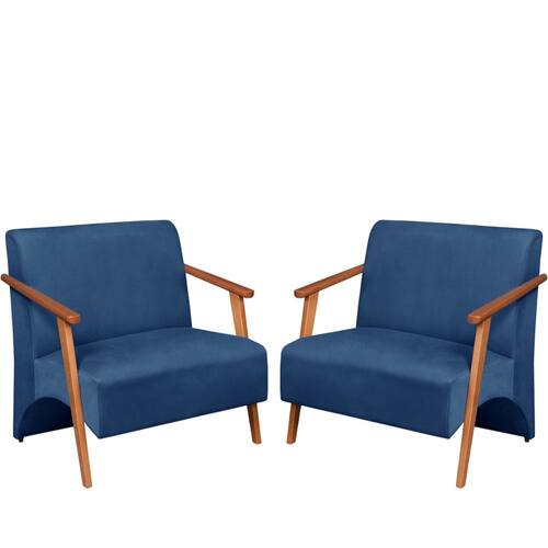 Kit 2 Poltronas Namoradeira Venus Braço Madeira Maciça Suede Unidecor