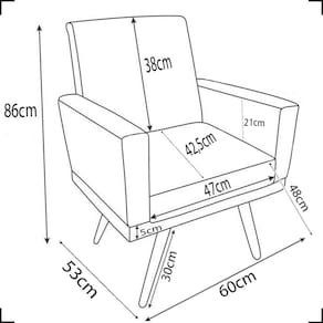 A Poltrona Nina combina elegância e conforto para transformar qualquer ambiente. Com um design sofisticado, estrutura em madeira de eucalipto e pés palito rosqueáveis, oferece resistência e estabilidade. Seu assento e encosto fixos, revestidos em tecido de alta qualidade, garantem um toque suave e agradável. Ideal para sala de estar, recepções ou espaços de leitura, proporcionando aconchego e estilo em um único móvel.