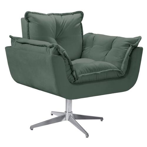 Poltrona Opala Giratória Alumínio Suede - Verde