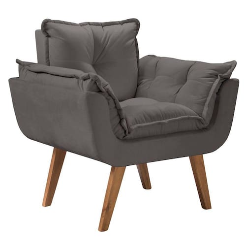 Poltrona Opalla Pé Palito Suede D Salla1 Lugar - Cinza