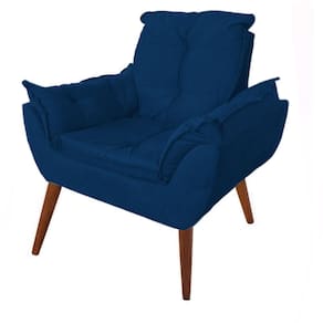 Poltrona Opalla Suede Azul Marinho Pés Palito Com Puff Banco
