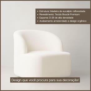 A Poltrona Orgânica Aloh Bouclé Premium é a escolha perfeita para quem busca estilo, conforto e sofisticação em um só produto. Seu revestimento em tecido bouclé, de textura macia e elegante, aliado às linhas contemporâneas, transforma o ambiente em um espaço mais acolhedor e moderno.