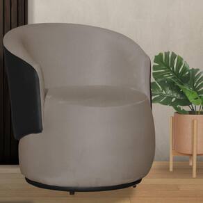 Poltrona Orgânica Beatriz Suede Cappuccino Com Composê Corino Preto - Vallisa Decor
