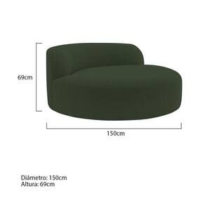 Descubra a Poltrona Redonda Chaise Rússia, uma peça que combina perfeitamente estilo moderno com conforto envolvente. Seu design circular e acolhedor não apenas oferece um visual contemporâneo, mas também proporciona um espaço íntimo e relaxante em qualquer ambiente da sua casa. Ideal para criar um canto de leitura acolhedor na sala de estar, ou para adicionar um toque de elegância ao seu escritório, esta poltrona se destaca pela sua versatilidade e conforto. Medidas da Poltrona: Diâmetro: 150 cm Altura: 69 cm Observações importantes - Produto para uso residencial em ambiente interno, não devendo ficar exposto diretamente ao sol, calor e umidades excessivas. - Pode haver alguma diferença de tonalidade entre a imagem e o produto real, por conta do tratamento de imagens e a calibração de cores do seu monitor. - As imagens são meramente ilustrativas, não acompanham objetos de decoração e eletrônicos. - Ao receber a mercadoria, o cliente deve verificar as condições da embalagem, caso haja alguma não assine o de . - Montagem, desmontagem e outras instalações serão de responsabilidade do cliente. Não nos responsabilizamos, no ato da , por subir escadas/elevadores ou pelo por guincho em apartamentos. Eventuais despesas são de responsabilidade do comprador. - Confira as dimensões do produto e certifique-se de que passará normalmente por supostos elevadores, portas, escadas e/ou corredores de sua residência