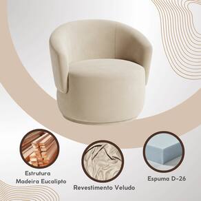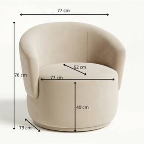 Poltrona Orgânica Conforto Escultural para Ambientes Sofisticados Com curvas suaves que abraçam o olhar e o corpo, esta poltrona estilo orgânico em veludo é a tradução perfeita do design contemporâneo aliado ao aconchego. Sua silhueta fluida, sem ângulos rígidos, transforma o ambiente em um espaço mais acolhedor e harmonioso ideal para salas de estar elegantes, cantinhos de leitura, quartos sofisticados, escritórios ou consultórios .\nO revestimento em veludo realça a proposta sensorial da peça: macio ao toque, visualmente acolhedor e extremamente refinado. A textura suave contrasta delicadamente com a base arredondada, criando uma presença marcante sem excessos. Inspirada no design orgânico contemporâneo, essa poltrona valoriza formas naturais, perfeita para composições minimalistas, escandinavas ou modernas.\nAlém da estética escultural, oferece conforto envolvente com encosto curvo e assento amplo, proporcionando apoio ideal para momentos de descanso ou conversas prolongadas. Uma peça versátil que eleva a decoração com elegância discreta, personalidade e conforto. \n \nESPECIFICAÇÕES:\nEstrutura em madeira eucalipto, resistente e durável.\nAssento revestido em Veludo de alta qualidade.\nDesign moderno, minimalista e fácil de combinar.\nIdeal para sala, quartos e espaços de leitura.\n \nDIMENSÕES: \nAltura: 76 cm\nAltura do chão ao assento: 40 cm\nLargura: 77 cm\nLargura do assento: 77 cm\nProfundidade: 73 cm\nProfundidade do assento: 62 cm\nPeso: 30 Kg\nPeso Suportado: 180 Kg\nEspuma D-26\n \nMOTAGEM\n- Produto vai montado.\n \nGARANTIA DA FÁBRICA \nCada peça passa por uma curadoria rigorosa que assegura beleza, qualidade e durabilidade. Ainda assim, caso algum produto apresente defeito de fabricação dentro de 90 dias após a entrega, nosso suporte humano, atencioso e altamente profissional estará pronto para atender você com agilidade e eficiência. Valorizamos sua confiança e estamos comprometidos em oferecer soluções rápidas que preservem sua experiência positiva com a marca. Aqui, garantir sua tranquilidade é parte do nosso padrão de excelência.\n \nCUIDADOS A LIMPEZA:\nUtilize um pano limpo e levemente úmido. Indicado para ambientes internos, evite exposição direta ao sol, calor excessivo e umidades.\n \nINFORMAÇÕES IMPORTANTES\n- Pode haver diferença entre a imagem e o produto real devido a tratamento de imagens e calibração do monitor.\n- Não garantimos a mesma cor para futuras compras devido à variação em lotes de tecido.\n- Não inclui objetos de decoração e eletros.\n- Confira as medidas para garantir que o produto passe por escadas, elevadores e portas.