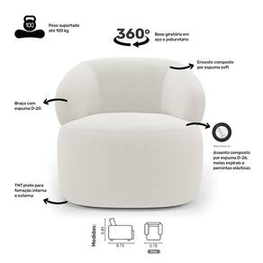 As percintas elásticas no assento aumentam a resistência e durabilidade, enquanto os braços, com espuma D-20, oferecem suporte adicional. A base em aço giratório e poliuretano não só permite uma rotação suave, mas também acrescenta um toque moderno ao seu espaço.