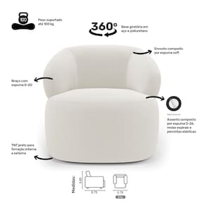 As percintas elásticas no assento aumentam a resistência e durabilidade, enquanto os braços, com espuma D-20, oferecem suporte adicional. A base em aço giratório e poliuretano não só permite uma rotação suave, mas também acrescenta um toque moderno ao seu espaço.