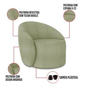 A Poltrona Lua é uma peça que combina segurança, conforto e durabilidade. Ela tem um design orgânico que remete às formas encontradas na natureza como ondas, folhas ou conchas que além de se moldar ao corpo humano, evoca uma sensação de calma e equilíbrio criando um espaço acolhedor e relaxante. Além da sua simetria artística e curvas suaves, ela contém um revestimento em tecido Bouclê Pistache, que cria uma conexão entre a peça e o ambiente. Ela é ideal para quem busca móveis que não só sejam bonitos, mas que também proporcionem conforto e bem-estar. Pode ser utilizada em sala de estar, recepções, escritórios, lojas e espaços comerciais, ou qualquer outro espaço que você queira decorar com estilo e bom gosto. Ela tem uma estrutura em madeira de reflorestamento eucalipto, que garante a resistência e a sustentabilidade do produto. Ela suporta até 120 kg de peso, podendo ser utilizada por pessoas de diferentes biotipos. Ela tem um acabamento reforçado e espuma de qualidade D23, que oferece maciez e aconchego. Ela contém detalhes de costura no encosto e um assento cilíndrico arredondado resultando em um acabamento impecável conferindo muito mais valor e elegância ao produto, oferecendo maior liberdade de movimento ao cliente. As sapatas plásticas são pequenas proteções colocadas na base dos pés do sofá para evitar que eles risquem ou danifiquem o chão. A Poltrona Lua é um móvel de alta qualidade, que exala sofisticação e conforto. Ela é fácil de transportar, pois tem um peso leve e um tamanho compacto. Ela vai trazer charme, Conforto incomparável e durabilidade para o seu ambiente. Corra e garanta seu kit 2 Poltronas agora mesmo!