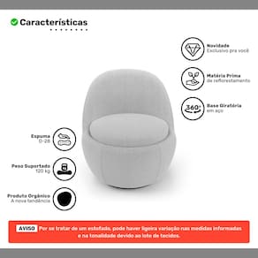 Poltrona Orgânica Living Memphis Base Giratória Bouclê Cinza Claro - Abmaza