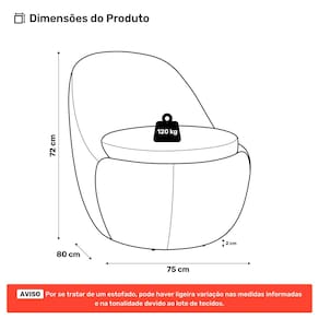 ** POR SE TRATAR DE UM ESTOFADO, AS MEDIDAS PODEM SOFRER UMA VARIAÇÃO DE ATÉ 3 CM.