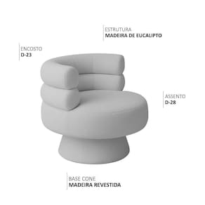 Poltrona Orgânica Mabel Base Giratória Bouclé Cinza Claro - Nexta Casa Poltrona Mabel Charme Contemporâneo e Conforto Acolhedor Transforme seu espaço com uma peça que une sofisticação e serenidade em cada curva!Descrição do Produto A Poltrona Mabel, da Nexta Casa, é a definição de elegância e versatilidade. Com linhas curvas suaves e design contemporâneo, ela se adapta a diversos estilos de decoração, do minimalista ao mais ousado, trazendo charme a salas de estar, quartos ou escritórios. Revestida em tecido Bouclé, oferece uma textura macia e um visual sofisticado, perfeito para criar um ambiente acolhedor. A estrutura em madeira reflorestada de eucalipto garante durabilidade, enquanto a espuma D-28 HR no assento, sobre chapas de OSB, e D-23 no encosto, sobre percintas elásticas de nylon, proporcionam conforto ergonômico para momentos de relaxamento. Sua base em forma de cone em madeira revestida suporta até 100 kg, unindo estabilidade e estética natural. Compacta e pronta para uso imediato, a Poltrona Mabel é a peça ideal para embelezar seu cantinho favorito! Características Técnicas Estrutura: Madeira reflorestada de eucalipto tratada, com partes em MDF e OSB robustez e sustentabilidade. Assento: Espuma D-28 HR sobre chapas de OSB conforto firme e duradouro. Encosto: Espuma D-23 sobre percintas elásticas de nylon suporte ergonômico ideal. Revestimento: Bouclé visual sofisticado e toque macio. Base/Pés: Madeira revestida, giratória. Peso Suportado: Até 100 kg sem impacto. Medidas Altura Total: 80 cm Largura: 84 cm Profundidade: 75 cm Peso: 23 kg Altura do Encosto: 32 cm Altura do Assento ao Chão: 48 cm Largura do Assento: 50 cm Profundidade do Assento: 57 cm Altura do Braço ao Assento: 32 cm Largura do Braço: 18 cm Altura dos Pés: 25 cm Diferenciais Design moderno linhas curvas suaves para um visual contemporâneo e versátil. Compacta e versátil ideal para diversos ambientes, de salas a escritórios. Espuma D-28 HR no assento conforto de alta qualidade. estabilidade e charme natural Quantidade de Volumes: 1. Não necessita de montagem pronta para uso imediato! Cuidados Utilizar um pano levemente umedecido com água, seguido de pano seco. Evitar exposição ao sol para preservar a cor vibrante do tecido. Não sentar nos braços ou encosto do produto. Não usar produtos abrasivos ou escovas. Garantia 3 meses contra de fabricação. Observações Imagens ilustrativas; tonalidade pode variar devido à configuração de cores da tela. Objetos de decoração não inclusos. Produtos enviados embalados com , reduzindo riscos de danos. Verificar as condições da embalagem na e reportar danos no . até a porta de entrada ou portaria. Confirme as dimensões e compatibilidade do de instalação. Não nos responsabilizamos por montagem, desmontagem, instalação ou por escadas/elevadores. Marca: Não Informado