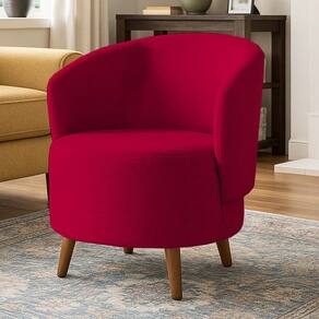 Poltrona Orgânica Suede Aisha Sala Escritório Pé Madeira Vermelho