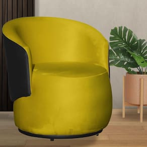Poltrona Beatriz Veludo Amarelo Com Composê Preto - Vallisa Decor