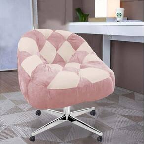 Poltrona Paloma Escritório Sala Giratória Metal Rodízio Sintético Rosa Bebê E Sintético Bege - Dominic Decor