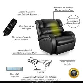 Diferenciais: Poltrona Elétrica com Massagem, Apoio de pés retrátil, botão LED para acionamento