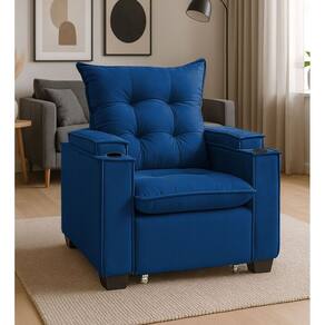 Poltrona Papai Reclinável Pulse Porta Copos Carregador usb Marinho - Poltrona Papai Reclinável Pulse com Porta Copos e Carregador USB