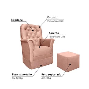 A Poltrona de amamentação Agatha com balanço em Madeira, garante muito mais conforto para a mamãe que deseja amamentar seu bebê, mantendo um vínculo ainda mais próximo. É perfeito para colocar em sua sala ou até mesmo no quarto do seu bebê. Sua estrutura é feita em madeira maciça eucalipto/pinus com revestido com tecido Veludo de qualidade. Com espuma Poliuretano D20 no encosto e D23 no assento, garatindo maior conforto. O Puff é perfeito para a mamãe se acomodar os pés durante a amamentação. E para finalizar, o encosto conta com capotinê, trazendo um estilo mais sofisticado.