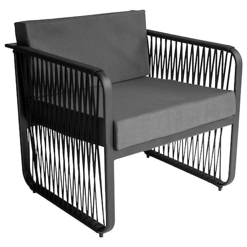 Poltrona Para área Externa Santiago Alumínio E Corda Náutica Preto/cinza A Poltrona Santiago e perfeita para areas gourmet, varandas, churrasqueiras e espacos externos. Produzida artesanalmente, sua estrutura em aluminio garante leveza e resistencia, enquanto os acabamentos em corda nautica adicionam charme e sofisticacao. Seu assento estofado conta com tecido impermeavel, proporcionando ainda mais comodidade e praticidade no dia a dia. Caracteristicas do Produto: Material: Aluminio Material do Assento: Tecido Impermeavel Material do Encosto: Tecido Impermeavel Acabamento: Corda Nautica Tipo de Assento: Fixo Tipo de Encosto: Fixo Possui Apoio de Braco? Sim Peso suportado(kg): 150kg