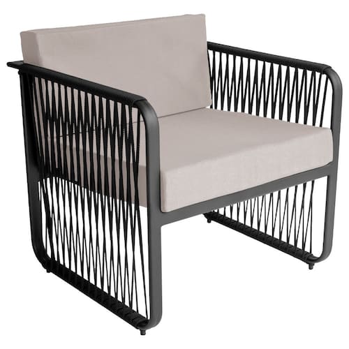A Poltrona Santiago ? perfeita para ?reas gourmet, varandas, churrasqueiras e espa?os externos. Produzida artesanalmente, sua estrutura em alum?nio garante leveza e resist?ncia, enquanto os acabamentos em corda n?utica adicionam charme e sofistica??o. Seu assento estofado conta com tecido imperme?vel, proporcionando ainda mais comodidade e praticidade no dia a dia.