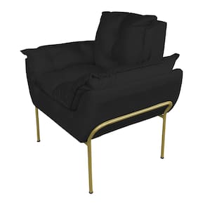 Poltrona para Escritório Base Dourada Suede Preto - Vallisa Decor