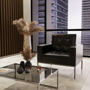 Conforto, Beleza e Sofisticação você encontra na Poltrona Isis, a sua recepção ou seu escritório para estarem completos merecem essa poltrona. Tem como principal característica o conforto e seu estilo moderno. Excelente estrutura composta por madeira de reflorestamento, base de metal na cor cromada, tecido sintético de alta qualidade, resistente, durável e possui uma aparência similar ao couro marroml o que torna esse produto mais do que especial. Acompanha Almofadas extras: Não Acompanha Puff: Não Almofada do assento: Fixa Almofada do encosto: Não Possui Altura do assento até o chão: 45 Altura do Encosto: 49 Altura dos Pés: 15 Ambiente Principal: Escritório Complexidade da Montagem: Baixa: pode ser montado por uma pessoa sozinha Cor: Preto Cor do Produto: Preto Design Assinado: Não Enchimento do Assento: Espuma D-23 Enchimento do Braço: Espuma D-23 Encosto para a Cabeça: Não Estampado: Não Extensível: Não Firmeza do Assento: Médio Informações Complementares: Poltrona fixa, estrutura em madeira de eucalipto e pinnus, composto com percinta elástica, manta siliconada e espuma d23. Revestido com tecido Sintético Preto. Pés de metal cromados. Itens Inclusos: 1 Poltrona Linha ou Coleção: Linha Manual de Montagem e Instalação: https://product-hub-prd.madeiramadeira.com.br/874997/documents/7eb359f4-6820-4bcf-a963-7167cb6375b51614031manualisispoltrona.pdf Material do Braço: Madeira Eucalipto Material dos Pés: Ferro Modelo de Poltrona: Fixo Necessita Montagem: Sim Origem do Produto: Nacional Peso: 195 Possui Percintas Elásticas: Sim Possui Pés: 02 Possui Rodízio: Não Recomendações de Uso, Manutenção e Limpeza: Seguir o manual de instruções Resistente à Chuva: Não Sistema de Montagem: Sim Suporta Até (kg): 120 Tecido Predominante: Couro Tipo de Assento: Fixo Tipo de Encosto: Fixo Tipo de Espuma do Assento: Espuma Convencional Tipo de Poltrona: Decorativa Ean: 7909903460474