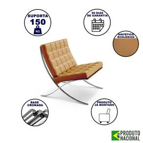 AS IMAGENS SÃO MERAMENTE ILUSTRATIVAS E PODEM SOFRER VARIAÇÕES DE COR E PEQUENOS DETALHES DE ACORDO COM O SEU MONITOR, ILUMINAÇÃO DO AMBIENTE E ATÉ MESMO A SUA PERCEPÇÃO VISUAL.Poltrona para Leitura Barcelona com Puff Courissimo Cromada - Caramelo