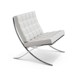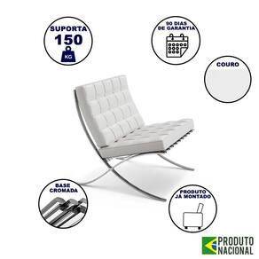 AS IMAGENS SÃO MERAMENTE ILUSTRATIVAS E PODEM SOFRER VARIAÇÕES DE COR E PEQUENOS DETALHES DE ACORDO COM O SEU MONITOR, ILUMINAÇÃO DO AMBIENTE E ATÉ MESMO A SUA PERCEPÇÃO VISUAL.Poltrona para Leitura Barcelona Couro Natural com Puff Cromada Branco
