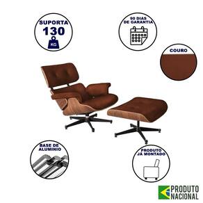 AS IMAGENS SÃO MERAMENTE ILUSTRATIVAS E PODEM SOFRER VARIAÇÕES DE COR E PEQUENOS DETALHES DE ACORDO COM O SEU MONITOR, ILUMINAÇÃO DO AMBIENTE E ATÉ MESMO A SUA PERCEPÇÃO VISUAL.Poltrona para Leitura Charles Eames com Puff Couro Marrom