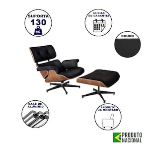 AS IMAGENS SÃO MERAMENTE ILUSTRATIVAS E PODEM SOFRER VARIAÇÕES DE COR E PEQUENOS DETALHES DE ACORDO COM O SEU MONITOR, ILUMINAÇÃO DO AMBIENTE E ATÉ MESMO A SUA PERCEPÇÃO VISUAL.Poltrona para Leitura Charles Eames com Puff Couro Preto