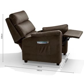 Dimensões da Poltrona aberta: Largura 1,00M; Profundidade 1,42M; Altura 1,08M.