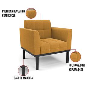 A Poltrona Elisa é uma poltrona que combina elegância, conforto e durabilidade. Ela tem um design retrô e sofisticado, com Base de Madeira Fixa Preto e revestimento em tecido Bouclê. Ela é ideal para sala de estar, recepções, escritórios, cozinhas ou qualquer outro espaço que você queira decorar com estilo e bom gosto. Ela tem uma estrutura em madeira de reflorestamento eucalipto, que garante a resistência e a sustentabilidade do produto. Ela suporta até 120 kg de peso, podendo ser utilizada por pessoas de diferentes biotipos. Ela tem um acabamento reforçado e espuma de qualidade D23, que oferece maciez e aconchego. Ela contém detalhes de costura no encosto e assento, resultando em um acabamento impecável, conferindo muito mais valor e elegância ao produto. A Poltrona Elisa é um móvel de alta qualidade, beleza e funcionalidade. Ela é fácil de transportar, pois tem um peso leve e um tamanho compacto. A Poltrona Elisa é um produto que vai fazer a diferença na sua decoração e no seu bem-estar. Ela vai trazer charme, conforto e durabilidade para o seu ambiente. Aproveite essa oferta e leve para casa uma poltrona de qualidade por um preço incrível. Essa é a sua chance de ter uma poltrona maravilhosa por um preço imperdível. Corra e garanta a sua antes que acabe o estoque!