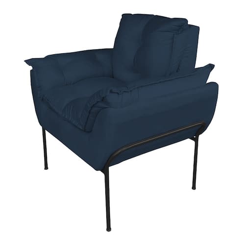 Poltrona para Sala Base Preta Suede Azul Marinho - Vallisa Decor