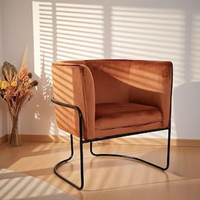 Estrutura: Madeira reflorestada de eucalipto tratada, MDF e OSB. Assento: Espuma D-28 HR. Encosto: Espuma D-23. Braço: Espuma D-23. Revestimento: Veludo. Pés: Tubos de aço com pintura epóxi.Vendido e entregue por WebContinental