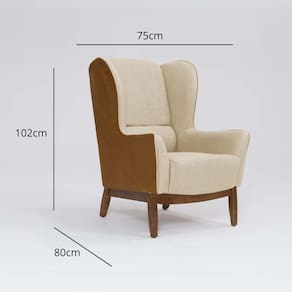 Possui estrutura em madeira de eucalipto tratado, MDF e OSB, fixados com grampos galvanizados. Conta com percintas elásticas de nylon e espumas certificadas, suportando até 100 kg. O revestimento com acabamento de 1ª, que garante maior resistência e durabilidade. Acompanha Almofadas extras: Não Acompanha Puff: Não Almofada do assento: Não Possui Almofada do encosto: Não Possui Altura do assento até o chão: 45 cm Altura do Encosto: 58 cm Altura dos Pés: 25 cm Ambiente Principal: Sala de Estar codigo_ean: 7900288315670 Complexidade da Montagem: Baixa: pode ser montado por uma pessoa sozinha Cor: Mescla Terracota / Marfim Cor do Produto: Mescla Terracota / Marfim Design Assinado: Não Encosto para a Cabeça: Não Estampado: Não Extensível: Não Itens Inclusos: 1 Poltrona e Kit Ferragens Linha ou Coleção: Milena Manual de Montagem e Instalação: https://product-hub-prd.madeiramadeira.com.br/601874082/documents/6ba2298f-e0e6-44b9-8733-d5849d71866fa7e45d934878838b1769001375.pdf Marca: Domi Material dos Pés: Madeira Modelo de Poltrona: Fixo Necessita Montagem: Sim Origem do Produto: Nacional Peso: 26,4 kg Possui Percintas Elásticas: Sim Possui Pés: 04 Possui Rodízio: Não Recomendações de Uso, Manutenção e Limpeza: Sua limpeza deve ser feita com pano úmido com água limpa, sem esfregar. Pode passar alcool líquido de uso doméstico na limpeza. Nunca sentar nos braços ou encosto do produto. Sistema de Montagem: Parafusos Suporta Até (kg): 100 kg Tecido Predominante: Linho Tipo de Assento: Fixo Tipo de Encosto: Fixo Tipo de Poltrona: Leitura