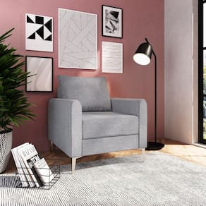 Modelo Davos da KF Estofados, é produzido com qualidade e proporciona muito conforto, modelos semi-montados que viajam em caixas de papelão com mais segurança e com menos risco de danos, facilitando as entregas nos elevadores e escadarias de prédios. Produzido com madeira ecologicamente correta, persintas elásticas resistentes, espumas certificadas, almofadas com fibra siliconada que proporcionam mais conforto e durabilidade. Acompanha Almofadas extras: Não Acompanha Puff: Não Almofada do assento: Fixa Almofada do encosto: Removível Altura do assento até o chão: 45 cm Altura do Encosto: 42 cm Altura dos Pés: 15 cm Ambiente Principal: Sala de Estar Complexidade da Montagem: Baixa: pode ser montado por uma pessoa sozinha Cor: Cinza Cor do Produto: Cinza Design Assinado: Não Enchimento do Assento: Espuma D-26 Enchimento do Braço: Espuma D-26 Enchimento do Encosto: Espuma D-26 Encosto para a Cabeça: Não Estampado: Não Extensível: Não Firmeza do Assento: Médio Informações Complementares: Poltrona transportada em caixa. Itens Inclusos: 1 Poltrona e Manual de Montagem Manual de Montagem e Instalação: https://product-hub-prd.madeiramadeira.com.br/892874/documents/4b147bf6-4cdc-4da9-8aab-89dedb7ebb53179882478986774814675.pdf Material do Braço: Madeira Eucalipto Material dos Pés: Alumínio Modelo de Poltrona: Fixo Necessita Montagem: Sim Origem do Produto: Nacional Peso: 25 kg Possui Percintas Elásticas: Sim Possui Pés: 04 Possui Rodízio: Não Recomendações de Uso, Manutenção e Limpeza: Deve ser feita com pano macio e seco ou levemente umedecido com água e sabão neutro. Não devem ser utilizados abrasivos como palha de aço e objetos cortantes. Sistema de Montagem: Parafusos e Minifix Suporta Até (kg): 100 kg Tecido Predominante: Linho Tipo de Assento: Fixo Tipo de Encosto: Fixo Tipo de Espuma do Assento: Espuma Convencional Tipo de Poltrona: Decorativa