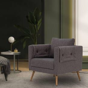 Poltrona Para Sala De Estar Brisa Pés Palito Linho Marrom Acinzentado - Nexta Casa