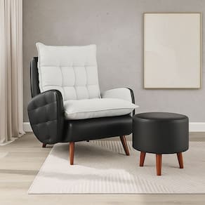 Estrutura em madeira de eucalipto e pés de madeira em pínus. Braço em MDF com acabamento em espuma.Vendido e entregue por MadeiraMadeira