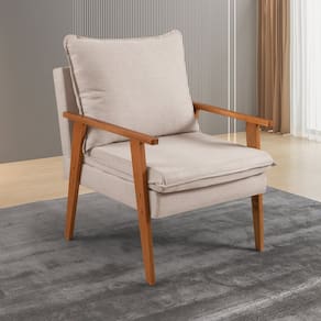 A Poltrona Decorativa Efatá possui design moderno, sofisticado e acolhedor pois possui no assento pillow de 8 cm com espuma D28 Soft. Além disso em seu assento persintas elásticas de excelente qualidade que garantem conforto e resistência. A almofada do encosto são preenchidas com 100% de fibra siliconada. A estrutura é fabricada em madeira de eucalipto, seca e imunizada e os pés em madeira maciça com acabamento em verniz fosco. A Poltrona Efatá é sinônimo de conforto na sala de estar da sua casa! Acompanha Almofadas extras: Não Acompanha Puff: Não Almofada do assento: Fixa Almofada do encosto: Removível Altura do assento até o chão: 45 cm Altura do Encosto: 50 cm Altura dos Pés: 60 cm Ambiente Principal: Sala de Estar codigo_ean: 7900288227195 Complexidade da Montagem: Baixa: pode ser montado por uma pessoa sozinha Cor: Bege Cor do Produto: Bege Design Assinado: Não Enchimento do Assento: Espuma D-28 Enchimento do Braço: Não Possui Encosto para a Cabeça: Não Estampado: Não Extensível: Não Firmeza do Assento: Médio Informações Complementares: Pillow de 8 cm com Espuma D28 Soft no assento Itens Inclusos: 1 Poltrona e Kit Ferragens Linha ou Coleção: Efatá Manual de Especificação Técnica: https://product-hub-prd.madeiramadeira.com.br/357759531/documents/1bf2f1a0-2458-43fc-83c3-24e1ec4e4c353197872204117576163763184.pdf Manual de Montagem e Instalação: https://product-hub-prd.madeiramadeira.com.br/357759531/documents/72e40b44-d3a7-4363-857c-af6cdee4644a3197871204117576163736778.pdf Marca: Vicam Estofados Material do Braço: Madeira Maciça Material dos Pés: Madeira Maciça Modelo de Poltrona: Fixo Necessita Montagem: Sim Origem do Produto: Nacional Peso: 14,5 kg Possui Percintas Elásticas: Sim Possui Pés: 02 Possui Rodízio: Não Recomendações de Uso, Manutenção e Limpeza: Uitlizarm pano levemente umidecido Sistema de Montagem: Parafusos e Chave Allen Suporta Até (kg): 100 kg Tecido Predominante: Linho Tipo de Assento: Fixo Tipo de Encosto: Fixo Tipo de Espuma do Assento: Soft Tipo de Poltrona: Decorativa Marca: Não Informado