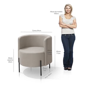 Profundidade: 65 cm Acompanha Almofadas extras: Não Acompanha Puff: Não Almofada do assento: Não Possui Almofada do encosto: Não Possui Altura do assento até o chão: 45 cm Altura do Encosto: 71 cm Ambiente Principal: Quarto Complexidade da Montagem: Baixa: pode ser montado por uma pessoa sozinha Cor: Bege Cor do Produto: Bege Design Assinado: Não Enchimento do Braço: Espuma D-23 Encosto para a Cabeça: Não Estampado: Não Extensível: Não Informações Complementares: Peso por Assento Itens Inclusos: 1 Poltrona, Kit Montagem Material do Braço: Espuma Selada Material dos Pés: ferro Modelo de Poltrona: Fixo Necessita Montagem: Sim Origem do Produto: Nacional Peso: 10 kg Possui Percintas Elásticas: Sim Possui Pés: 04 Possui Rodízio: Não Recomendações de Uso, Manutenção e Limpeza: Não Utilize produtos químicos, nem aparelhos a vapor ou secador quente Sistema de Montagem: parafusos Suporta Até (kg): 110 kg Tecido Predominante: Linho Tipo de Assento: Fixo Tipo de Encosto: Fixo Tipo de Poltrona: Decorativa Marca: Konfort King