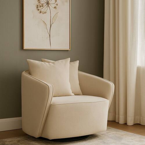 A Poltrona Antonela é o equilíbrio perfeito entre estética, conforto e funcionalidade — o destaque que faltava na sua decoração. Acompanha Almofadas extras: 01 Acompanha Puff: Não Almofada do assento: Fixa Almofada do encosto: Fixa Altura do assento até o chão: 45 cm Altura do Encosto: 33 cm Ambiente Principal: Sala de Estar codigo_ean: 7900288337719 Cor: Bege Cor do Produto: Bege Design Assinado: Não Enchimento do Assento: Espuma D-28 Enchimento do Encosto: Espuma D-28 Encosto para a Cabeça: Não Estampado: Não Extensível: Não Firmeza do Assento: Médio Itens Inclusos: 1 Poltrona Linha ou Coleção: Antonela Marca: Sofani Modelo de Poltrona: Giratório Necessita Montagem: Não Origem do Produto: Nacional Peso: 50 kg Possui Percintas Elásticas: Sim Possui Pés: Não Recomendações de Uso, Manutenção e Limpeza: Detergente Neutro Suporta Até (kg): 150 kg Tecido Predominante: Linho Tipo de Assento: Fixo Tipo de Encosto: Fixo Tipo de Espuma do Assento: Espuma Hiper Soft Tipo de Espuma do Encosto: Espuma Hiper Soft Tipo de Poltrona: Decorativa