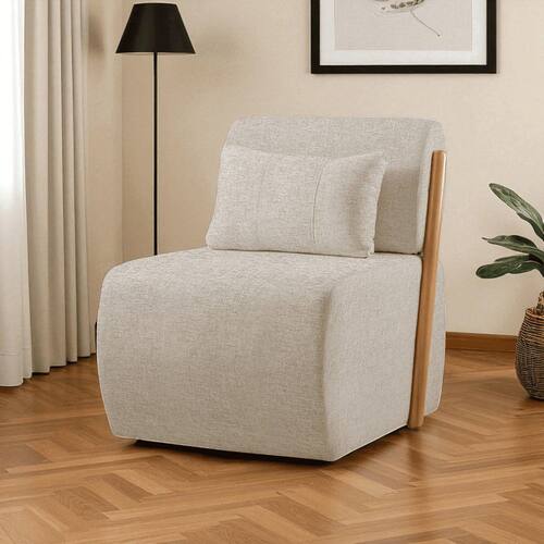 Inspirada em linhas orgânicas, seu design minimalista e envolvente, sem braços aparentes, e o charmoso detalhe lateral em madeira, trazem a versatilidade e a distinção que o seu ambiente moderno precisa. É perfeita para criar aquele canto de leitura aconchegante que você deseja.
