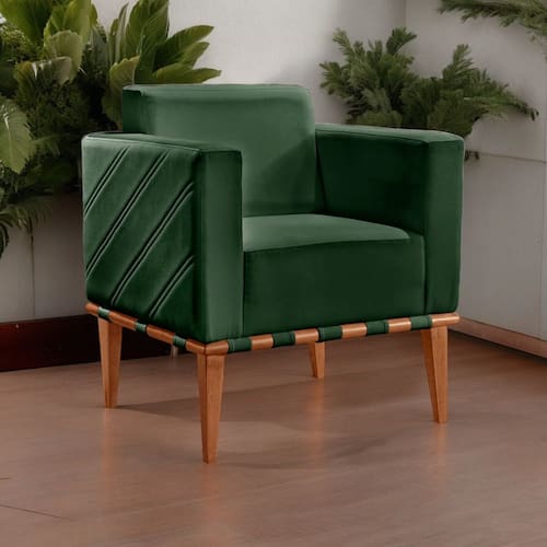 Verificar dimensões para acesso ao local de uso Acompanha Almofadas extras: Não Acompanha Puff: Não Almofada do assento: Não Possui Almofada do encosto: Fixa Altura do assento até o chão: 46 cm Altura do Encosto: 40 cm Altura dos Pés: 26 cm Ambiente Principal: Sala de Estar Complexidade da Montagem: Baixa: pode ser montado por uma pessoa sozinha Cor: Verde Cor do Produto: Verde Design Assinado: Não Enchimento do Braço: Espuma D-26 Enchimento do Encosto: Espuma D-26 Encosto para a Cabeça: Não Estampado: Não Extensível: Não Informações Complementares: Bordado na lateral do braço. Detalhe no acabamento da madeira da base. Itens Inclusos: 1 Poltrona Linha ou Coleção: PREMIUM Material do Braço: Madeira Estofada Material dos Pés: Madeira Maciça Modelo de Poltrona: Fixo Necessita Montagem: Sim Origem do Produto: Nacional Peso: 18 kg Possui Percintas Elásticas: Sim Possui Pés: 04 Possui Rodízio: Não Recomendações de Uso, Manutenção e Limpeza: Utilizar um pano levemente umedecido, seguido de pano seco.Evitar exposição ao sol, para que não sofra alterações na cor do tecido.Não limpar com escovas ou semelhantes. Sistema de Montagem: Enroscar os pés na base Suporta Até (kg): 140 kg Tecido Predominante: Veludo Tipo de Assento: Fixo Tipo de Encosto: Fixo Tipo de Espuma do Encosto: Soft Tipo de Poltrona: Decorativa