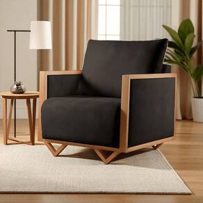 Poltrona para Sala de Estar Madeira Maciça Lara Luxo Preto