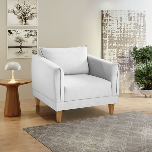 Chegou a sua nova companheira para relaxar com estilo: nossa Poltrona Decorativa! Com design moderno, tecido superconfortável e Pillow dos assentos com 10 cm de altura, ela é perfeita para aquele cantinho preferido que você se joga depois de um dia corrido. Feita com materiais de alta qualidade e pés de madeira, essa peça vai trazer aquele toque de sofisticação e conforto que você estava procurando. Ideal para qualquer ambiente, seja no escritório, na sala de estar ou uma poltrona para o quarto, ela vai ser a estrela da sua casa. Aproveite e transforme seu espaço com praticidade e bom gosto! Acompanha Almofadas extras: Não Acompanha Puff: Não Almofada do assento: Fixa Almofada do encosto: Removível Altura do assento até o chão: 45 cm Altura do Encosto: 46 cm Altura dos Pés: 14 cm Ambiente Principal: Sala de Estar Cor: Gelo Cor do Produto: Gelo Design Assinado: Não Enchimento do Assento: Espuma D-28 Enchimento do Braço: Espuma D-28 Encosto para a Cabeça: Não Estampado: Não Extensível: Não Firmeza do Assento: Macio Informações Complementares: Assento Pillow com 10 cm de altura Itens Inclusos: 1 Poltrona Linha ou Coleção: Melina Material do Braço: Espuma e Madeira Material dos Pés: Madeira de Eucalipto Modelo de Poltrona: Fixo Necessita Montagem: Não Origem do Produto: Nacional Peso: 35 kg Possui Percintas Elásticas: Sim Possui Pés: 04 Possui Rodízio: Não Recomendações de Uso, Manutenção e Limpeza: Não utilizar produtos químicos. Não utilizar produtos abrasivos. Não molhar. Utilizar pano macio e seco . Suporta Até (kg): 120 kg Tecido Predominante: Boucle Tipo de Assento: Fixo Tipo de Encosto: Fixo Tipo de Espuma do Assento: Soft Tipo de Poltrona: Decorativa Marca: Celflex