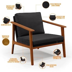 A praticidade e facilidade de compor qualquer ambiente a tornam ainda mais atraente, também merece destaque a estrutura em madeira, na cor nozes, o encosto estofado com a almofada solta que deixam tudo melhor e equilibrado em seu espaço.