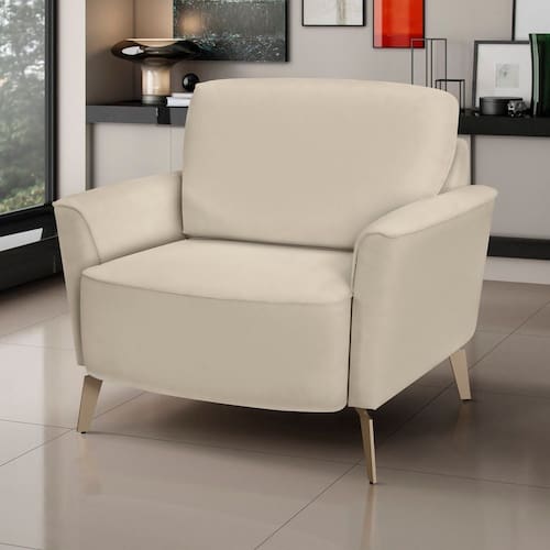 A Poltrona Star é a fusão perfeita entre elegância e conforto. Seu assento macio, preenchido com espuma D28 soft e mola espiral, oferece um suporte excepcional ao corpo, proporcionando momentos de relaxamento inigualáveis. Seu design ergonômico e durabilidade exemplar tornam esta poltrona um investimento de qualidade em beleza e praticidade. Além disso, sua estética refinada adiciona um toque de sofisticação a qualquer ambiente, combinando harmoniosamente com diversos estilos de decoração. Escolha a Poltrona Star e transforme sua sala de estar em um espaço de conforto e requinte, ideal para desfrutar de momentos memoráveis com familiares e amigos Acompanha Almofadas extras: Não Acompanha Puff: Não Almofada do assento: Fixa Almofada do encosto: Removível Altura do assento até o chão: 43 cm Altura do Encosto: 42 cm Altura dos Pés: 17 cm Ambiente Principal: Sala de Estar Cor: Marfin Cor do Produto: Marfin Design Assinado: Não Enchimento do Assento: Espuma D-28 Enchimento do Braço: Espuma D-28 Encosto para a Cabeça: Não Estampado: Não Extensível: Não Firmeza do Assento: Macio Informações Complementares: Não Itens Inclusos: 1 poltrona Material do Braço: Sim Material dos Pés: Aluminio Modelo de Poltrona: Fixo Necessita Montagem: Não Origem do Produto: Nacional Peso: 37 kg Possui Percintas Elásticas: Sim Possui Pés: 04 Possui Rodízio: Não Recomendações de Uso, Manutenção e Limpeza: Não Suporta Até (kg): 120 kg Tecido Predominante: Veludo Tipo de Assento: Fixo Tipo de Encosto: Fixo Tipo de Espuma do Assento: Soft Tipo de Poltrona: Decorativa Marca: ESTOFADOS GRAFANI
