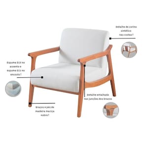 Descubra a Poltrona Olívia, a peça que combina design atemporal com a durabilidade que você procura. Estrutura robusta em Madeira Maciça garante longevidade. O conforto é inigualável: desfrute do toque macio da espuma contínua, com D28 no assento e D26 no encosto, projetadas para um descanso perfeito. Seus pés e braços em madeira maciça são complementados por um sofisticado acabamento de entalhe nas junções, um detalhe artesanal que confere charme exclusivo. E para um toque de personalidade, o detalhe de composê de tecidos nas costas fará da Olívia o destaque da sua decoração. A união perfeita entre beleza, conforto e resistência. Acompanha Almofadas extras: Não Acompanha Puff: Não Almofada do assento: Fixa Almofada do encosto: Fixa Altura do assento até o chão: 46 cm Altura do Encosto: 38 cm Ambiente Principal: Sala de Estar codigo_ean: 7900288264060 Cor: Bege Claro Cor do Produto: Bege Claro Design Assinado: Não Enchimento do Assento: Espuma D-28 Enchimento do Encosto: Espuma D-26 Encosto para a Cabeça: Não Estampado: Não Extensível: Não Firmeza do Assento: Médio Informações Complementares: Produto feito com madeira maciça e revestido com Linho 100% poliéster. No assento é utilizado Espuma Contínua S/A D28 e D26 no encosto. Itens Inclusos: 1 Poltrona Linha ou Coleção: Olívia Marca: Estofart Material dos Pés: Madeira Modelo de Poltrona: Fixo Necessita Montagem: Não Origem do Produto: Nacional Peso: 23 kg Possui Percintas Elásticas: Não Possui Pés: 04 Possui Rodízio: Não Recomendações de Uso, Manutenção e Limpeza: - Não expor ao sol ou fonte de calor; Não utilizar produtos de limpeza como detergente, álcool, solventes, ou produtos químicos; Para a limpeza, utilizar pano umedecido em água, sabão neutro e escova de cerdas macias, deixando secar a sombra. Em caso de excesso de poeira, usar aspirador de pó; Não provocar tensões desproporcionais no assento da poltrona, provocadas por quedas ou pulos; Evitar contatos com animais; Preservar o produto de objetos aquecidos ou pontiagudos; Mantê-lo em local arejado; Não arrastar pelos braços; Transportar com o máximo de cautela. Suporta Até (kg): 120 kg Tecido Predominante: Linho Tipo de Assento: Fixo Tipo de Encosto: Fixo Tipo de Espuma do Assento: Espuma Convencional Tipo de Espuma do Encosto: Espuma Convencional Tipo de Poltrona: Decorativa Marca: Não Informado