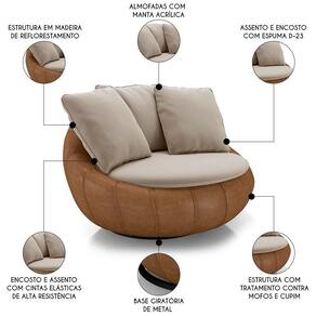 Com design contemporâneo, visando o conforto e a estética, a Poltrona Decorativa Redonda Giratória Saphire M22 Veludo Bege/Caramelo, da Mpozenato vai compor os mais diversos ambientes, desde uma Sala De Estar, a um quarto ou lounge.